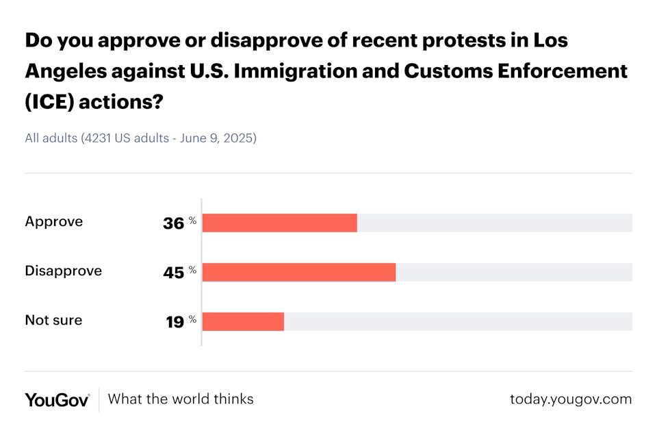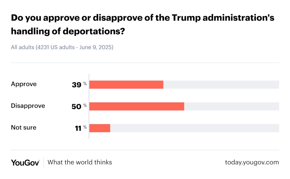 Meanwhile, early polling shows that Americans generally disapprove of both Trump’s deportation policies and the protests against them:
