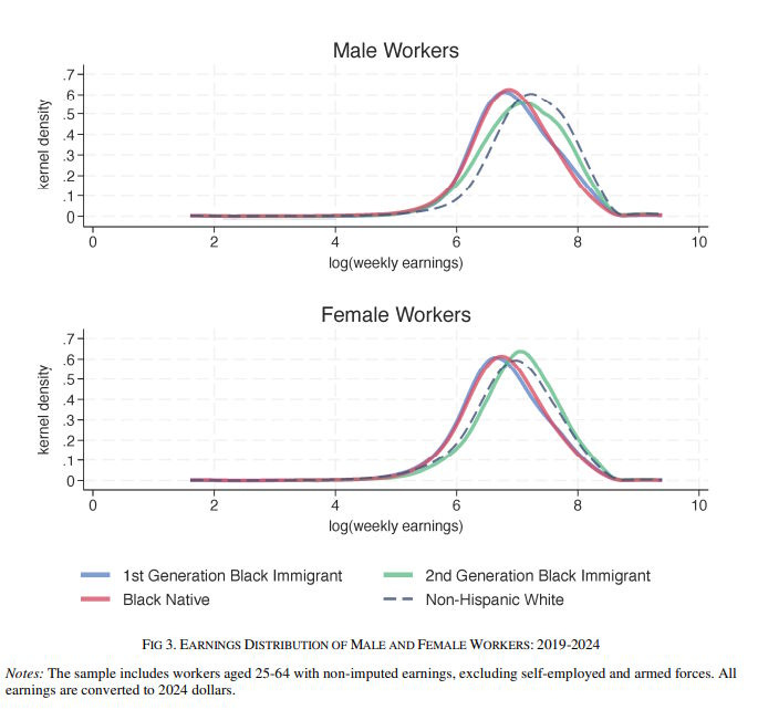 As you can see from that chart, Black immigrants earn about as much as native-born Black Americans. But 2nd-generation Black Americans earn about as much as White Americans.
