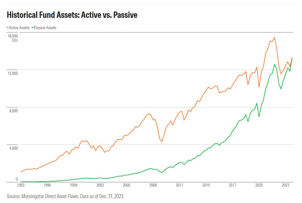 This logic is incredibly powerful, and it’s why passive investing has inexorably taken over from active investing: