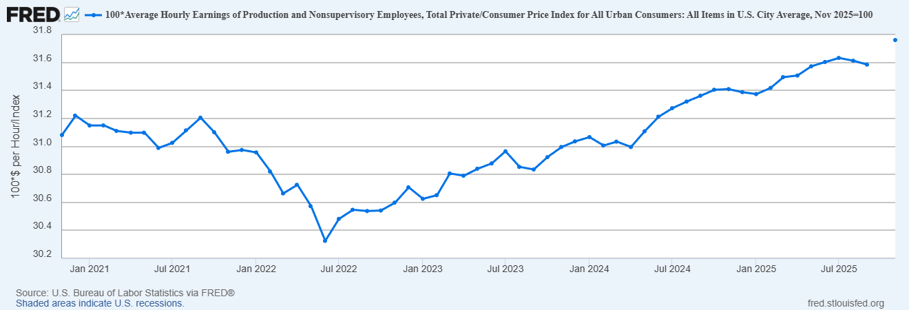 And real wages — i.e., how much an hour of work can buy for the average worker1 — are rising strongly again, after falling in 2021-22: