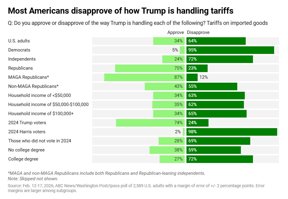 [T]he Supreme Court ruled that the unilaterally imposed [tariffs] were illegal…No longer does Trump have a tariff “on/off” switch…Future tariffs will need to be imposed by lengthy, more technical trade authorities — or through Congress…