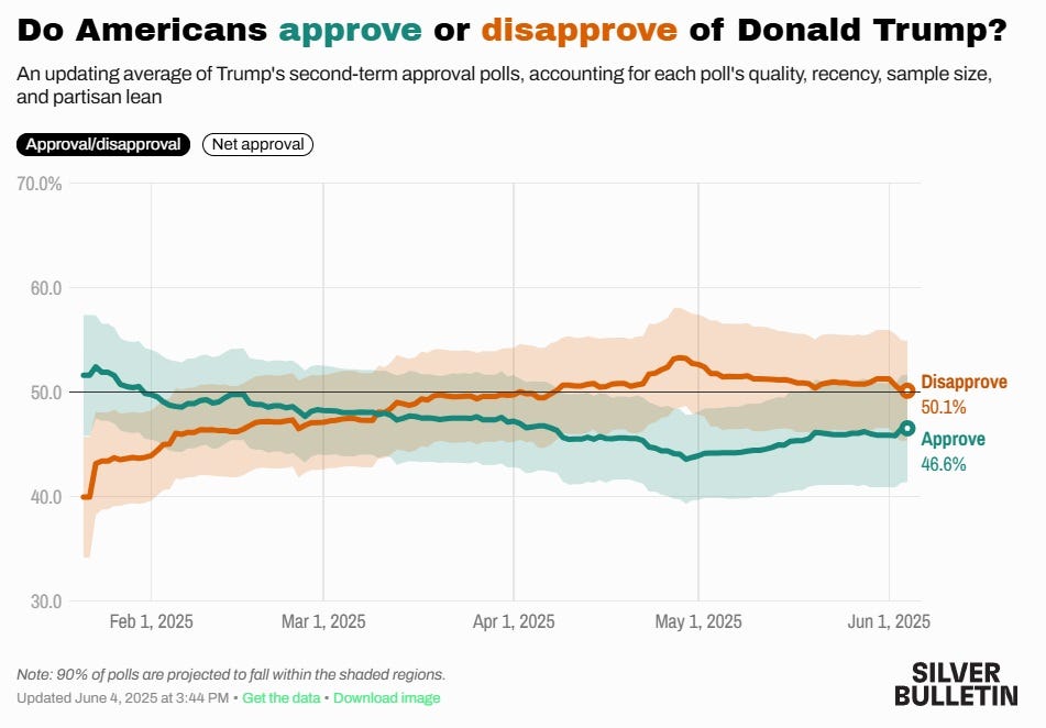 Wall Street is betting that the pauses will continue, or that the courts will end up blocking most of the tariffs (there have been several court rulings against tariffs in the past week; the administration is appealing these). That’s probably why the stock market has gone up. And the nation, perhaps sensing that Trump is just a bag of hot air rather than a madman, has become a little less unhappy about his presidency in recent weeks: