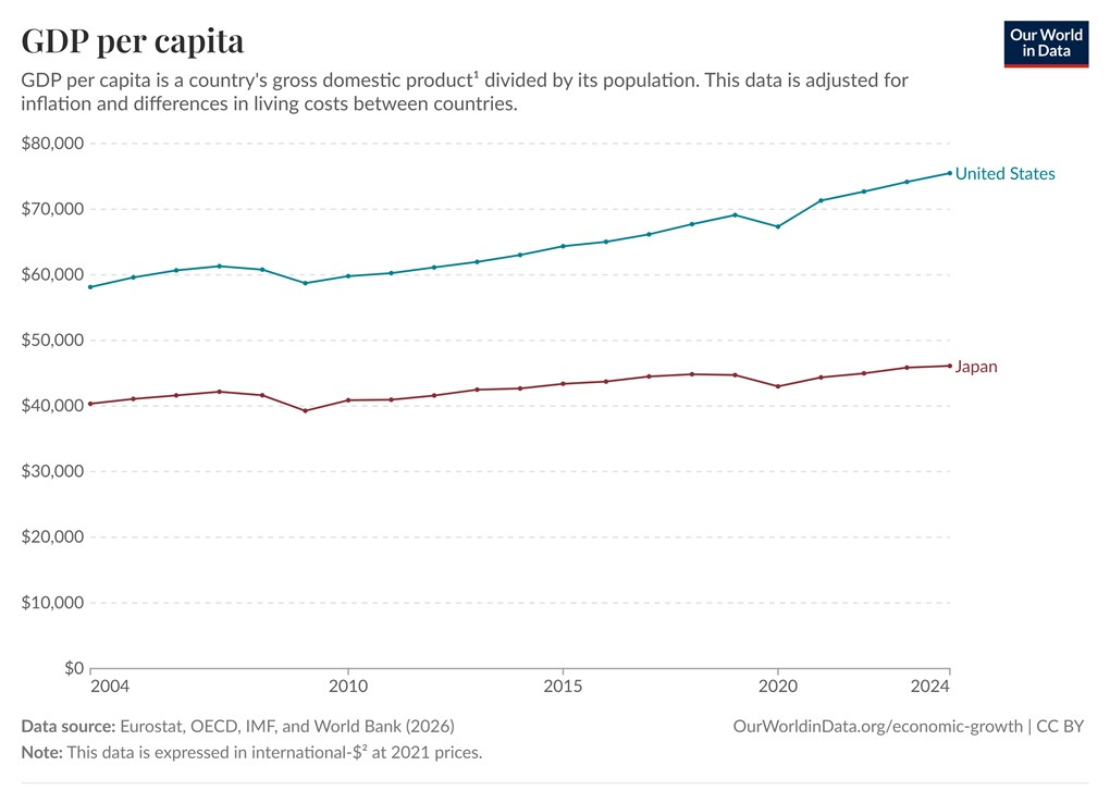 Japan feels like a poorer country than it did when I lived there, but this is actually an illusion; it’s actually slightly richer:
