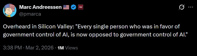 What's worrying is the supply chain risk designation. If it can be given out just because the government doesn't like what a company is doing then it's open season. When a Democrat is in office they can declare SpaceX, Palantir and Anduril to be supply chain risks and reduce them to zero. I really don't get the tech right people supporting the move against Anthropic. It's as if they can't think past the next minute.