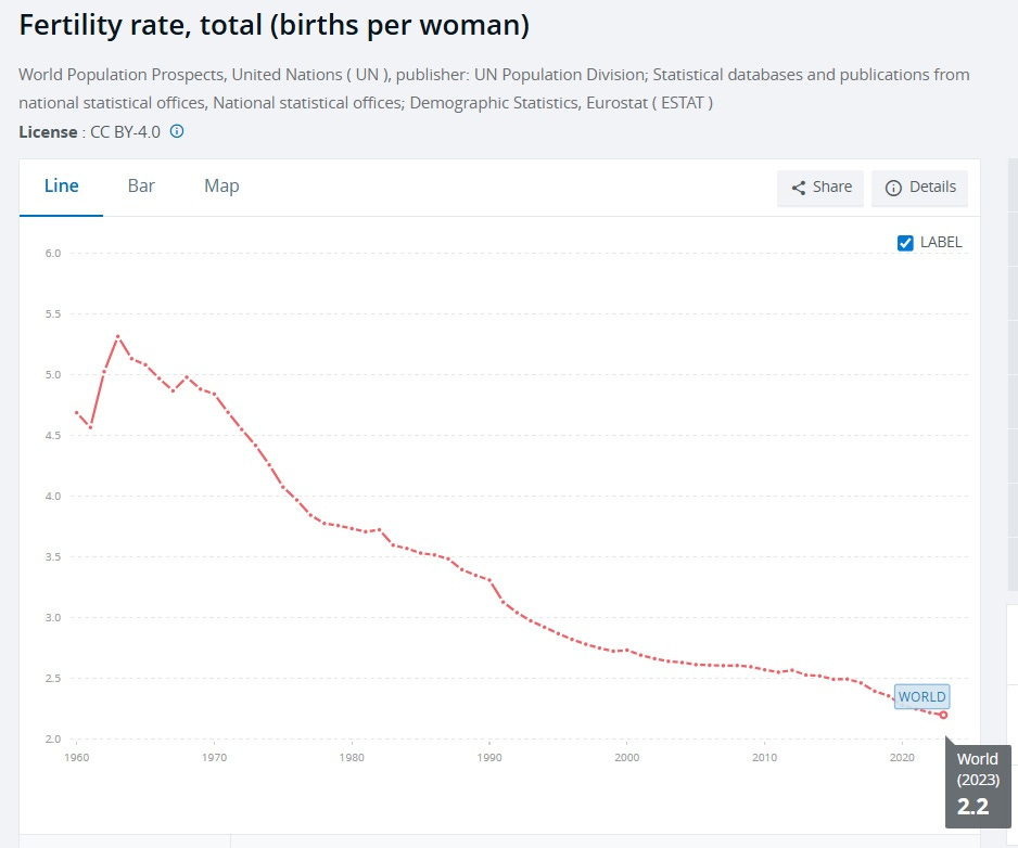 Immigration is good, but sadly it won’t solve the population problem. First, fertility is falling across the entire world, even in the poorest countries of Africa. In the world as a whole, fertility rates are approaching replacement level and may already be there.