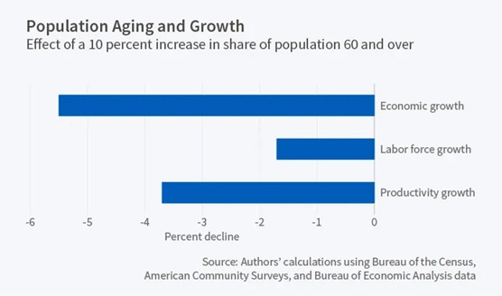 The third problem is that aging populations tend to have lower productivity growth: