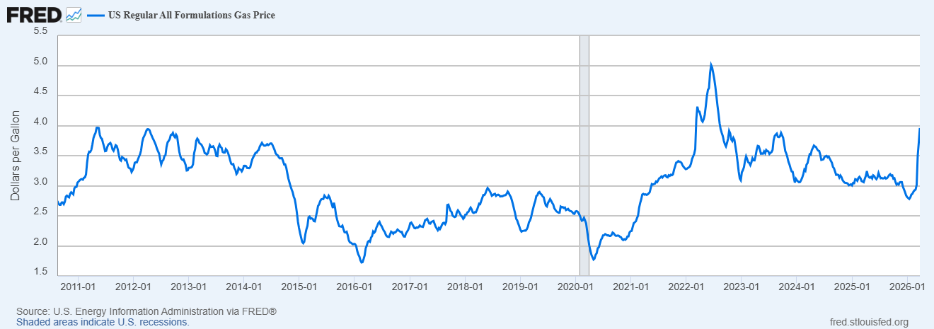 $4/gallon gas isn’t historically that high. If you measure relative to typical American incomes, it’s considerably lower now than it was in the early 2010s. But that’s cold comfort to people who have to commute every day to work, and who just saw their weekly gas bill increase by 50%. Those people have every right to be upset about Donald Trump’s war in Iran.
