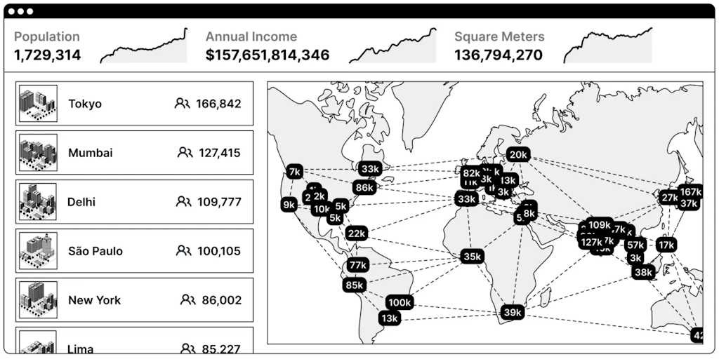Balaji envisions network states buying up property in various locations — housing, conference centers, ranches, whatever — and using these as physical nodes where the members of a network state can gather. Eventually, he speculates that network states could conduct independent foreign policy, negotiating with traditional nation-states using the leverage of the global network to extract concessions of limited sovereignty — special tax treatment, trade agreements, and so on. Here’s a picture of what a global network state might look like:
