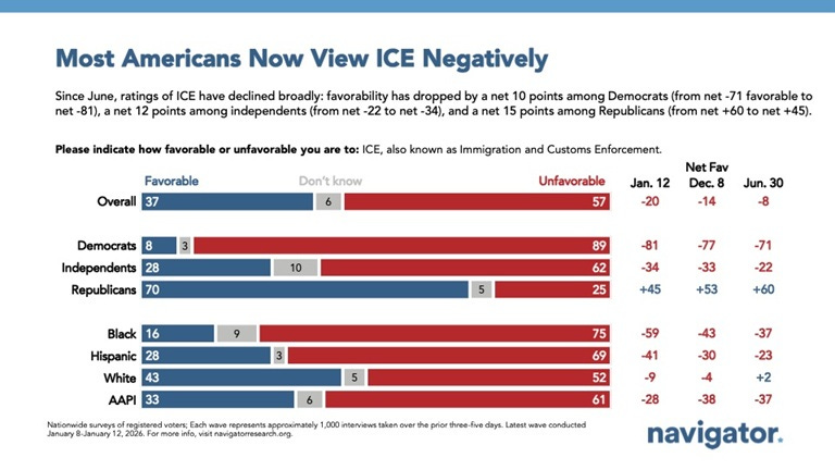 ICE’s name is becoming toxic, with a majority of white voters and even 25% of Republicans disapproving of the agency: