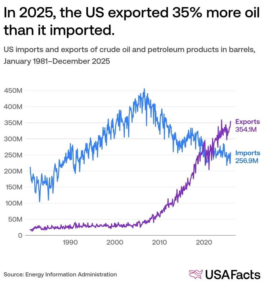 That means that U.S. oil companies will see a big windfall from the war. But the inflation bump resulting from higher input prices will probably still happen, and oil-consuming industries — chemicals, transportation, etc. — will still probably suffer.