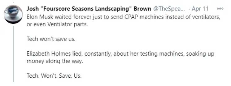 So it’s small wonder that when COVID hit, I got tweets like the following: