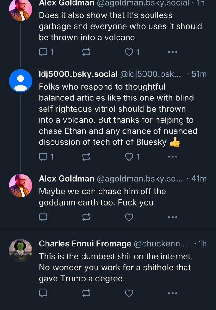 I look at the replies that Mark Cuban gets on Bluesky for trying to hold real conversations and its basically everyone just screaming into his face telling him he is the worst person ever for being a billionaire (regardless of topic posted)