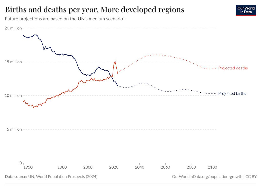But the window when developed countries (including China) can afford to treat poor countries like an afterthought is rapidly drawing to a close. The reason is simple demographics. The whole developed world is about to start shrinking. If not for immigration, it already would be: