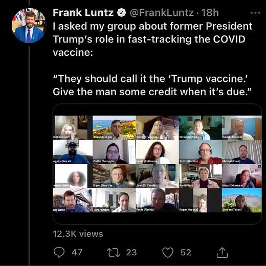 Of course I can’t say Democrats are entirely blameless here either; we tend to associate the successful vaccination rollout with Biden and only rarely mention the credit that Trump deserves. We know that Biden, not Trump, will get the lion’s share of the credit when the economy recovers, and GOP voters know this too. Perhaps some Republicans would rather try to free-ride on their neighbors’ immunity than give the hated Democrats a win. So perhaps Democrats should extend an olive branch by talking up Trump’s role in the successful vaccine development. Sadly, I doubt they’ll do that, and I have no idea how well it would work in any case.
