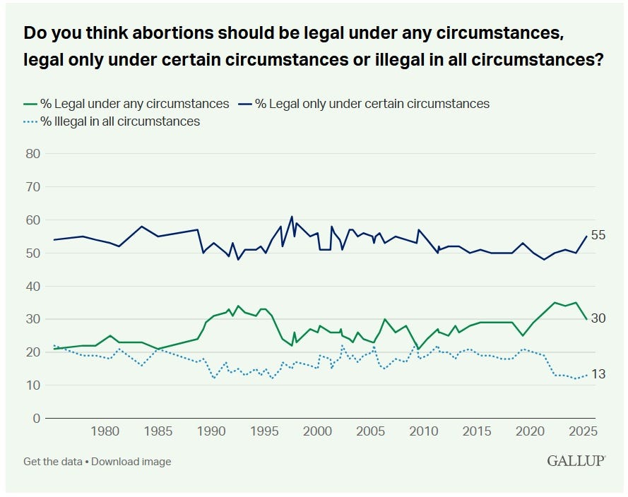 The recent dramatic overturning of Roe v. Wade in 2022 has led to a stalemate, with abortion rights more restricted than they’ve been in over half a century. There was surprisingly little public backlash to the change — no dramatic nationwide marches, no riots, at best a small electoral bump for Democrats in 2022. By the time the GOP swept to power in 2024 it was almost forgotten.