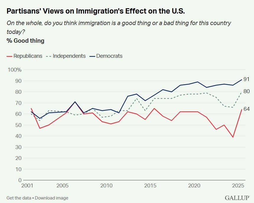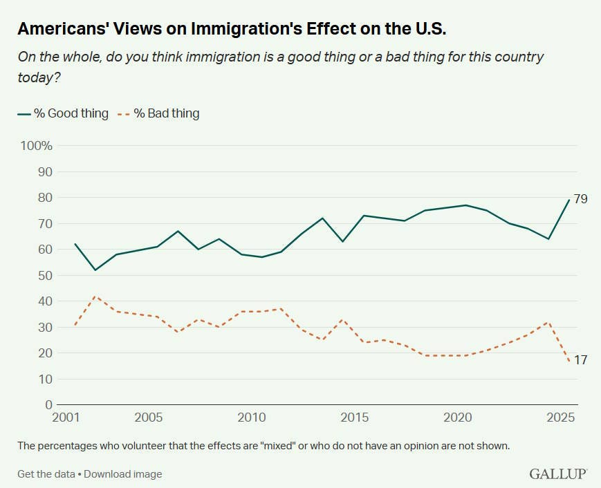 And the percentage of Americans who say immigration benefits the nation is surging: