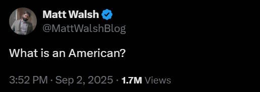 There’s a meme going around on right-wing social media, where right-wing influencers ask “What is an American?”. Some don’t give answers, and simply assume that people who read the question will start thinking along the lines they want: