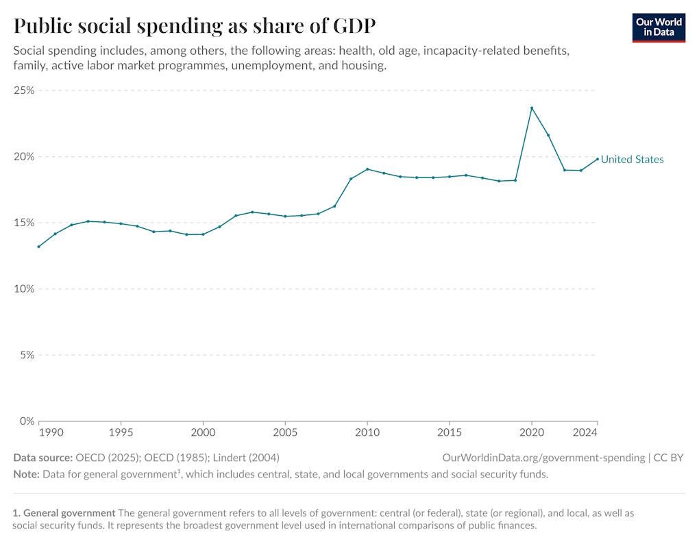 That vague dream of 1980s liberalism became the Earned Income Tax Credit, the Child Tax Credit, the expansion of SNAP and Section 8 and Medicaid and Medicare — a Second Great Society. And thanks to my nation’s turn toward generosity, the rate of after-tax poverty fell: