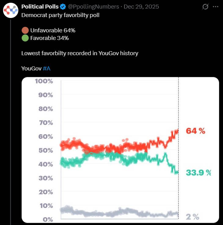 And yet here I stand, in 2026, and America’s long arc of liberalism appears to have bent straight into the dirt. Americans may have soured on Donald Trump, and may hand the Democrats a victory in this year’s midterm elections, but at the same time, they despise the Democratic Party: