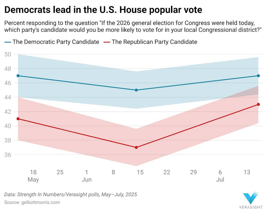And at least as of a couple weeks ago, Democrats were leading Republicans in generic ballot polling for the 2026 Congressional election: